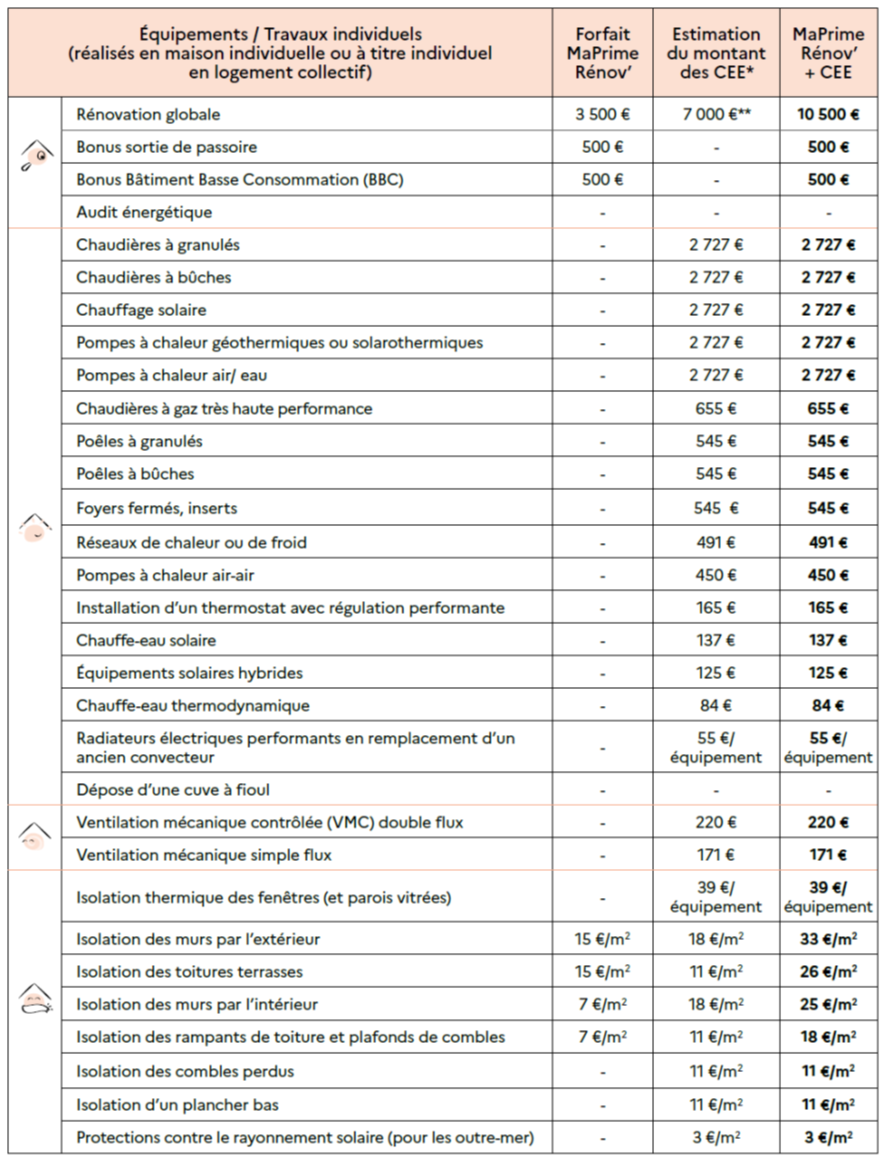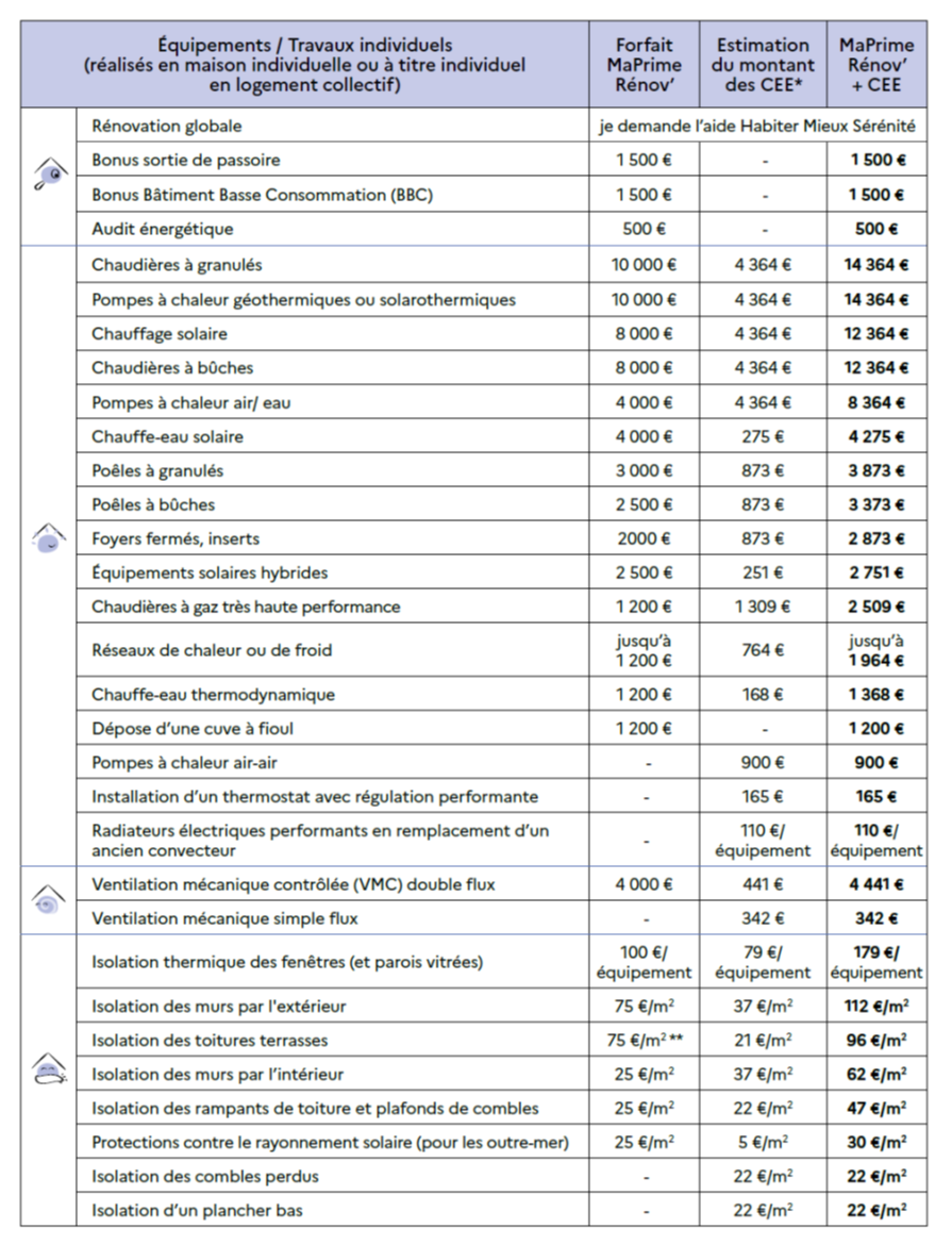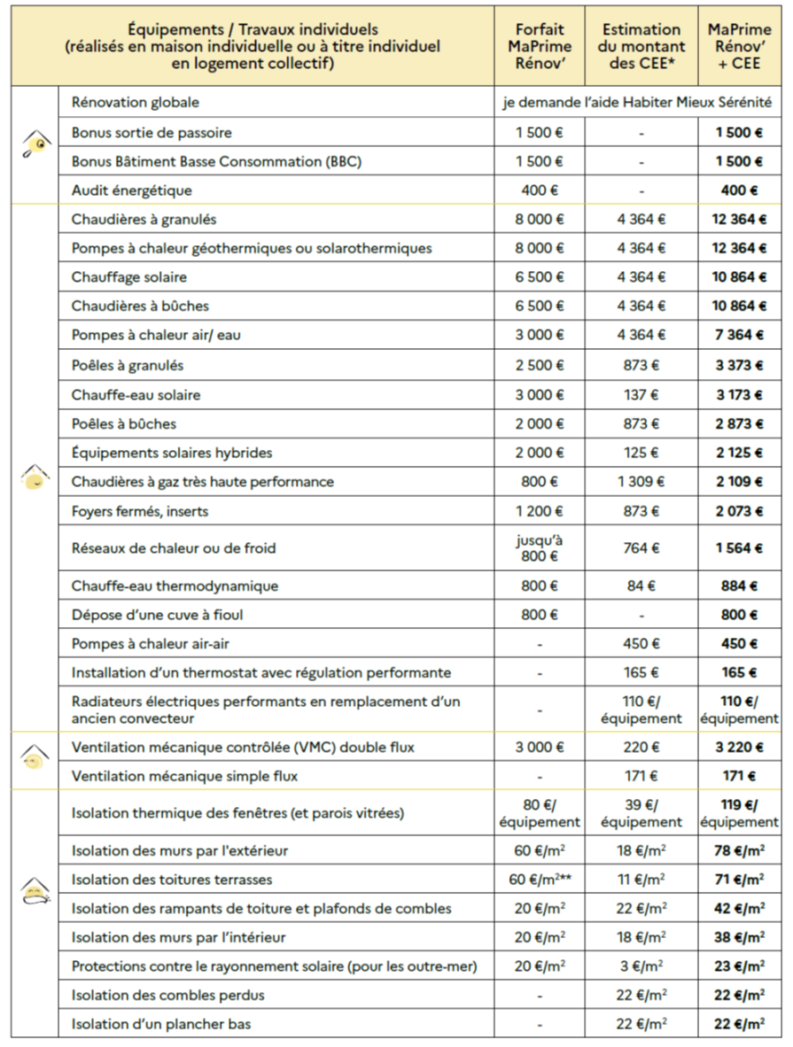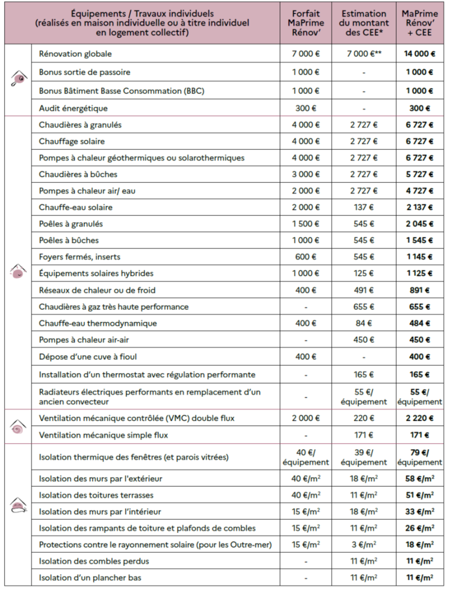 Tout d’abord, le dispositif n’est plus soumis à conditions de ressources. Les ménages aux revenus intermédiaires ou supérieurs qui, jusqu’ici, bénéficiaient du CITE y sont désormais éligibles. Les catégories de ressources, dont le nombre ne change pas, seront maintenant repérées par couleurs (Bleu, jaune, violet ou rose). Les niveaux de primes resteront donc différents selon les ressources du ménage.