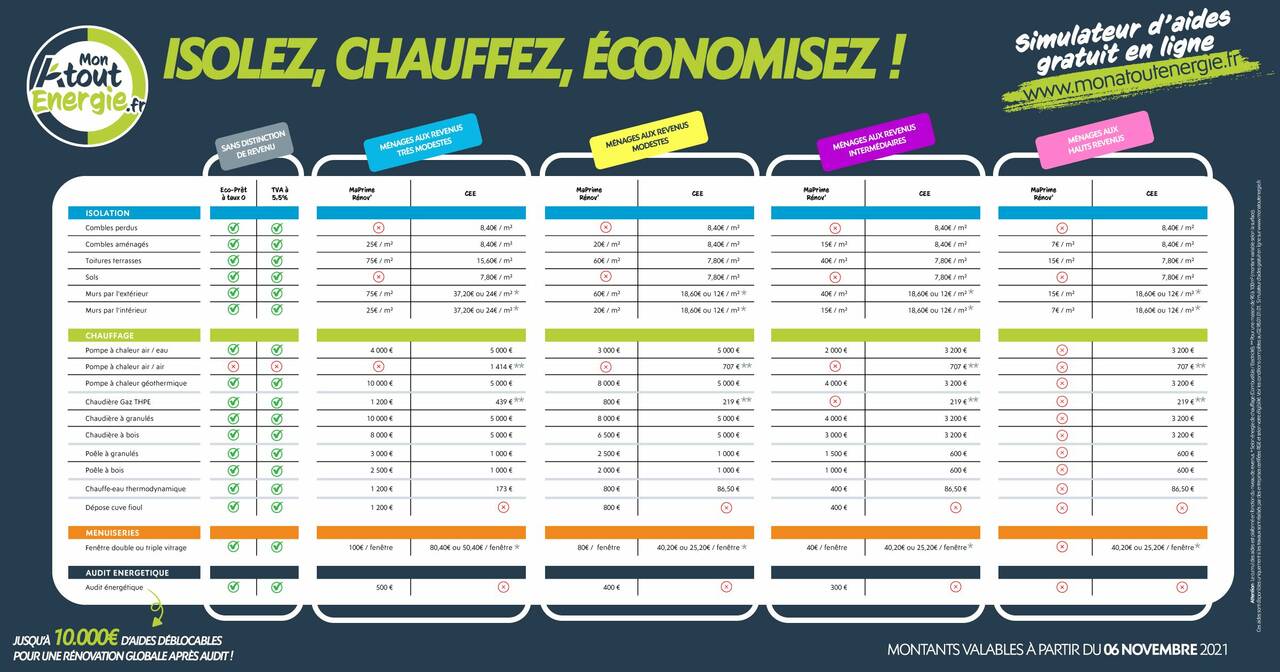 À partir du 6 Novembre 2021, les montants des aides pour vos travaux de rénovation énergétique évoluent. Découvrez-les dès maintenant !